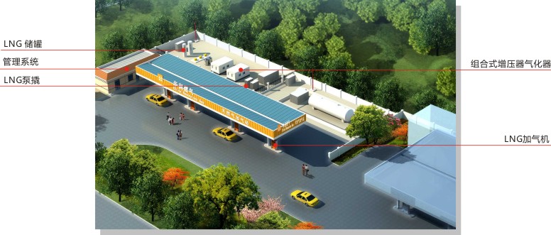 LNG储罐,组合式增压气化器,LNG加气机,LNG泵撬,管理系统,真空管道等
